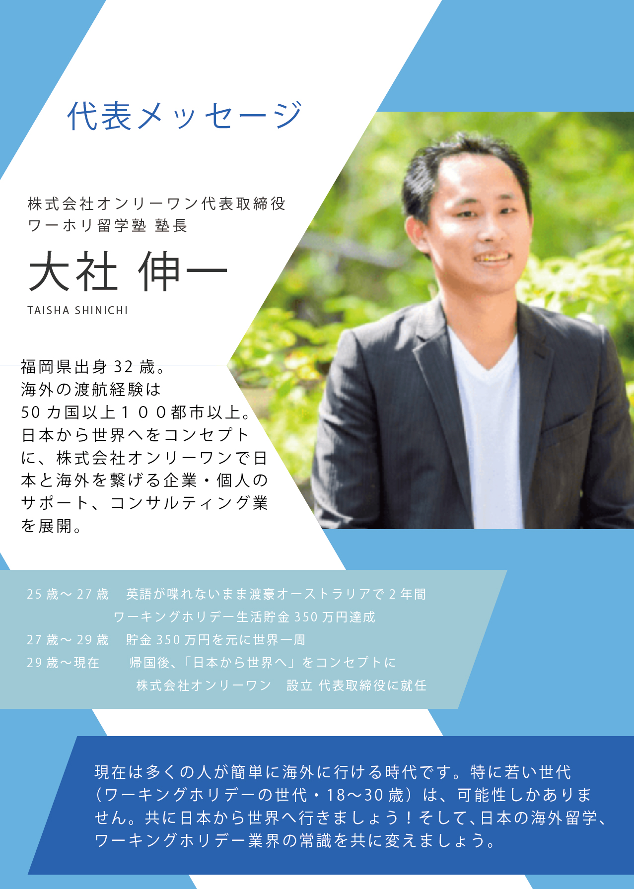 日本から世界へ 世界で一つのオンリーワンを目指して